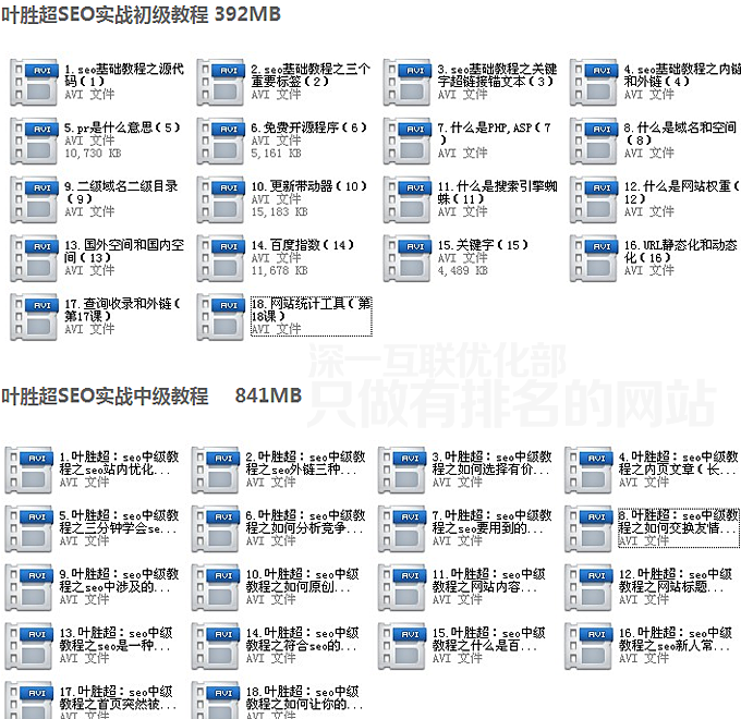 深一優(yōu)化部seo教程包總共包括17套完整SEO視頻教程 分別是: